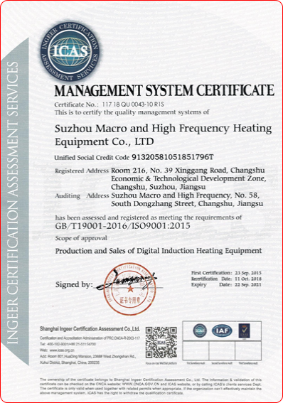 蘇州宏創(chuàng)高頻加熱設備有限公司位于江蘇省蘇州市常熟經(jīng)濟技術開發(fā)區(qū)內,是一家科技型高新技術企業(yè),公司擁有全數(shù)字、智能型感應加熱核心專利,專注于全系列數(shù)字化感應加熱電源及自動化生產(chǎn)線的研發(fā)、生產(chǎn)和銷售,產(chǎn)品涉及航空航天、機械制造、電力電子、五金機電、五金工具、制冷暖通等行業(yè)及領域。 我廠在感應加熱領域擁有數(shù)十年經(jīng)驗,服務過數(shù)百個行業(yè),超過1000多家客戶,并且持續(xù)為數(shù)十家軍工企業(yè)提供產(chǎn)品和服務,助力國防事業(yè)!典型客戶有:航天四院、兵器部、蘭州坦克、西航空、三角航空、中國北車、玉柴、長城汽車、比亞迪汽車...... 助力《中國制造2025計劃》,我司還自建兩個金屬感應熱處理實驗室,并且免費對外開放!您只需要把要測試的工件通過快遞或者您親自帶過來即可,我們工程師會為您現(xiàn)場直播實驗過程、并提供成熟的熱處理工藝解決方案,從而最大限度地降低您的設備選型風險和成本! 歡迎您蒞臨我廠參觀指導,同時我們也支持“視頻直播驗廠”,預約電話:19951013511